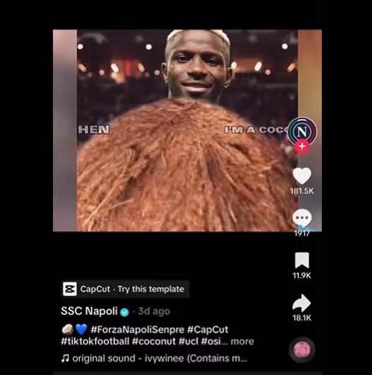 나폴리는 공식 채널에 소속팀 선수를 인종차별 하는듯한 영상을 게시했다. 주축 스트라이커 오시멘이 볼로냐전에서 페널티킥을 실축하는 영상에 "제발 페널티킥 주세요"라는 더빙으로 조롱 섞인 멘트를 입혔고, 오시멘을 코코넛에 비유하기도 했다.