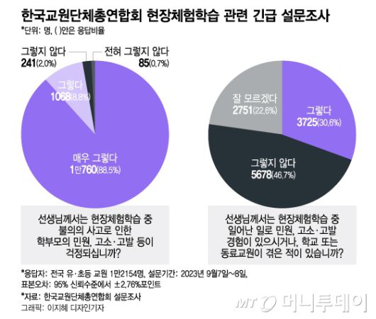 익명을 요구한 수도권 한 교사는 "학창 시절 추억을 위해서라는 이유로 소풍을 유지하기엔 보완해야 할 점이 많다"며 "실제 원하는 효과를 위해선 현장 안전인력 추가나 교사의 책임범위 정비 등 제도적 뒷받침이 우선"이라고 말했다.