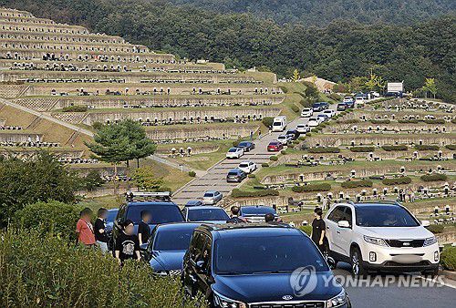 성묘객 차량 붐비는 묘원 |