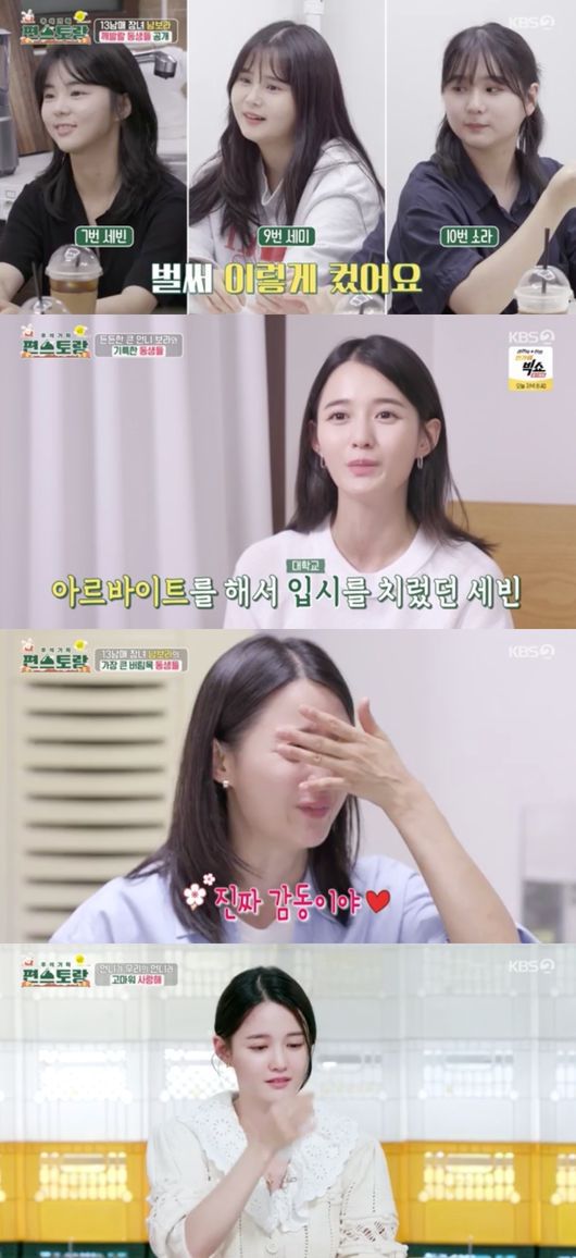 이를 본 이연복은 "남보라씨가 13남매 장녀 자리가 얼마나 무거웠을까 그런생각 한다. 고맙게 받아들이고 행복하게 생각하니 가족이 화목한것같다. 보기 좋다"고 말했고, 남보라는 "응원해주고 지지해주는 사람들이 수적으로 많다는것만으로도 든든하다"며 "우리 집이 엄청 평안하고 안정적으로 잘 지내온 시간은 아니었지만 다같이 힘든 시간 이겨내고 지나왔던 모든것들이 값지다는 생각 들었다. 든든한 지원군이 너무 많다는게 감사했고 이런 사람들이 내 가족이라는게 행복했다. 가장 좋은 친구이자 지원군. 가장 소중한 존재들이다"라고 동생들을 향한 애정을 전했다.