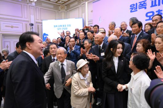 이날 윤 대통령이 동포들과 악수를 나누며 들어서자 동포들은 일어서서 큰 박수로 맞이했다고 이 대변인은 전했다. 윤 대통령은 “정부가 여러분을 이렇게 모시기까지 78년이라는 시간이 걸렸다. 너무 늦어서 죄송하다는 말씀을 다시 한 번 드린다”면서 “우리 정부는 자유, 인권, 법치의 보편 가치를 공유하는 가장 가까운 이웃인 일본과 협력하면서 역내, 그리고 세계 평화와 번영을 증진해 나갈 것”이라고 약속했다.
