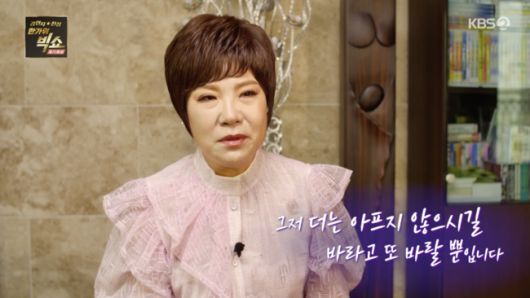 더불어 김연자는 "(어머니께서) 작년부터 (건강이) 나쁘다, 나쁘다 하셨는데 어느 순간부터 넘어지시더라. 말도 어눌해지시고, (몸이) 하나씩 아프시고 있다. 처음엔 받아들이지 못해서 저도 힘들었는데, 요즘 보면서 더 안 아파지시길 바라기만 한다"라며 눈물을 흘렸다.