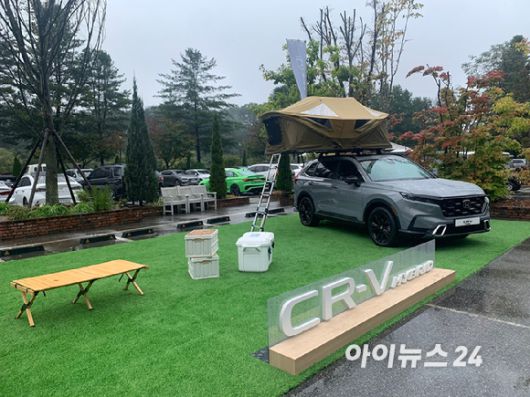 경기도 가평군 더스테이힐링파크에서 열린 미디어 시승회에 전시된 혼다 '올 뉴 CR-V 하이브리드' 모습. [사진=김종성 기자]