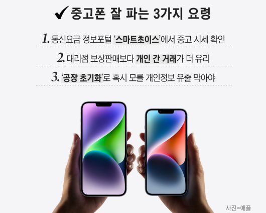 중고폰 거래는 대부분이 개인 간 거래 또는 소규모 업체를 중심으로 이뤄지고 있는 만큼 팔 때도, 살 때도 찝찝한 기분이 남는 게 사실이다. 중고폰을 파는 입장에서는 제값을 다 받았는지 혹시 휴대폰에 있는 개인정보가 유출되지 않을지 걱정스럽고, 사는 입장에서도 품질이 나쁘지 않을지, 혹시 도난 휴대폰은 아닌지 우려스럽다. 다음 달 애플 아이폰15 시리즈 출시를 앞두고 중고폰을 판매하려는 수요가 늘어나는 만큼 중고폰을 잘 파는 3가지 요령을 정리해봤다.