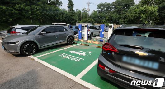 20일 오후 서울 종로구 국립기상박물관에 전기차량이 충전을 하고 있다. 2023.7.20/뉴스1 ⓒ News1 김성진 기자 |
