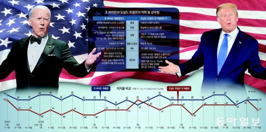조 바이든 미국 대통령과 도널드 트럼프 전 대통령의 약력 및 강약점, 지지율 비교. 동아일보 DB |
