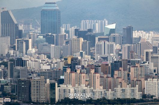 서울 중구 남산서울타워에서 바라본 서울 도심의 아파트 단지 모습./문재원 기자 |