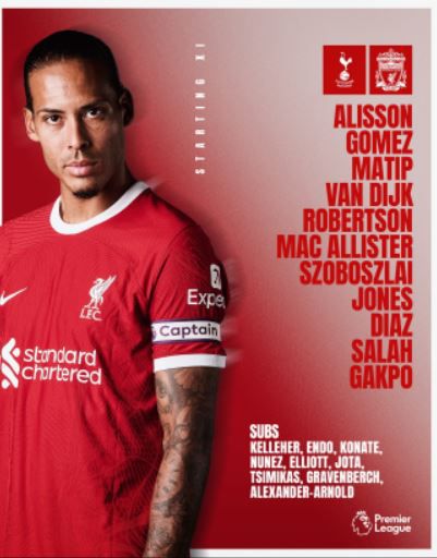 원정팀 리버풀은 위르겐 클롭 리버풀 감독이 4-3-3 전술을 택했다. 알리송 베케르가 골문을 지키고, 앤디 로버트슨, 버질 판데이크, 조엘 마팁, 조 고메스가 백4를 구성했다. 중원은 커티스 존스, 알렉시스 맥앨리스터, 도미니크 소보슬러이가 맡고, 최전방 3톱 자리엔 루이스 디아스, 코디 각포, 모하메드 살라가 이름을 올렸다.