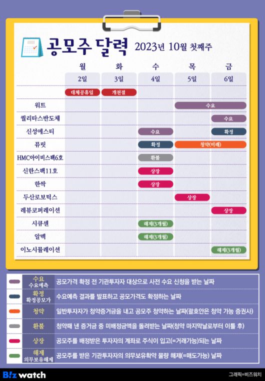 공모주달력 10월 첫째주/그래픽=김용민 기자 kym5380@ |