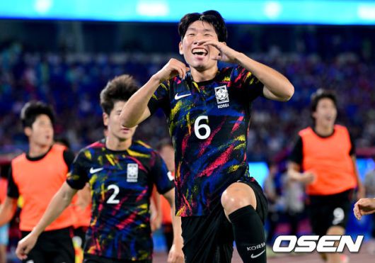 황재원은 전반 18분 박스 앞에서 프리킥 기회를 얻어냈다. 홍현석이 왼발로 찬 공이 골키퍼를 지나 그대로 선제골로 연결됐다. 한국이 1-0 리드를 잡았다. /reccos23@osen.co.kr