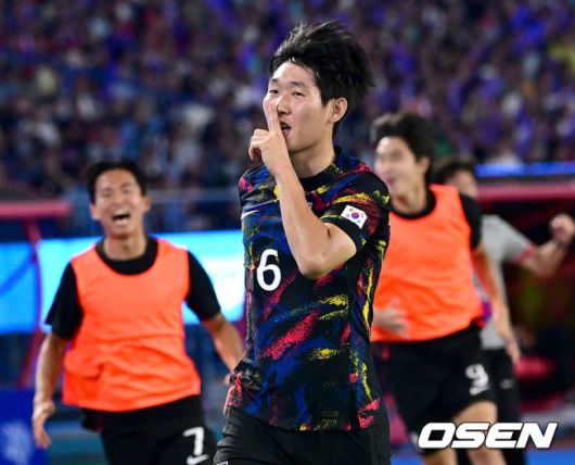 이 경기 황선홍 감독은 파격적인 선발 라인업을 꺼내들었다. '에이스' 이강인과 '주포' 정우영, 그리고 이들과 2선에서 합을 맞췄던 엄원상을 모두 벤치로 보냈다. 대신 송민규, 고영준, 안재준을 선발로 세웠다. 왼쪽 측면 수비수로는 '와일드카드' 설영우 대신 박규현을 선발로 기용했다.