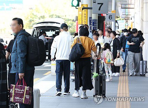 (서울=연합뉴스) 김성민 기자 = 추석 연휴 막바지인 2일 오후 서울 강서구 김포공항에서 이용객들이 버스 정류장으로 이동하고 있다. 2023.10.2 ksm7976@yna.co.kr ▶제보는 카카오톡 okjebo▶연합뉴스 앱 지금 바로 다운받기~▶네이버 연합뉴스 채널 구독하기 <저작권자(c)연합뉴스. 무단전재-재배포금지.>