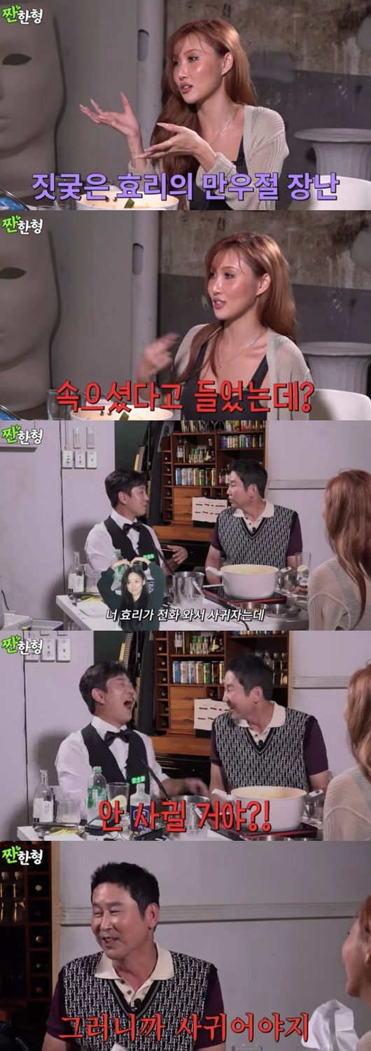 신동엽은 “나는 좀 (눈치가) 빠르니까”라며 이효리의 장난에 속지 않았다고 이야기했다. 이에 화사는 “속으셨다고 들었는데. 속으셨잖아요”라고 반문했다.