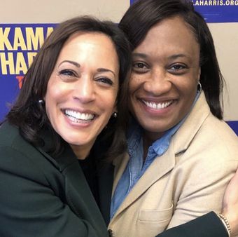 개빈 뉴섬 캘리포니아 주지사는 1일(현지시간) 밤 성명을 통해 최근 임기 중 별세한 고(故) 다이앤 파인스타인 전 민주당 상원의원의 후임으로 40대 흑인 성소수자인 라폰자 버틀러 에밀리스 리스트 회장을 지명했다. 사진은 카멀리 해리스 부통령과 버틀러 지명자. 버틀러 지명자 'X' 캡처. |