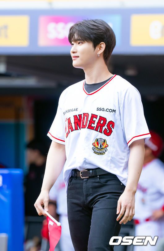 [OSEN=인천, 민경훈 기자] 3일 오후 인천 문학동 SSG랜더스필드에서 ‘2023 신한은행 SOL KBO리그’ SSG 랜더스와 NC 다이노스의 경기가 열렸다. 경기 전 그룹 크래비티의 우빈이 애국가를 부르기 위해 그라운드로 나오고 있다. 2023.10.03 / rumi@osen.co.kr