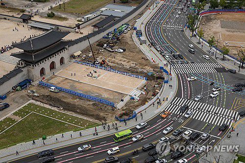 문화재청은 이달 중 광화문 월대 복원을 위한 공사 작업을 마무리할 계획이다.