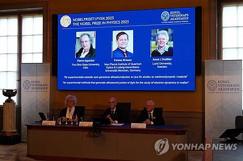 스웨덴 왕립과학원 노벨위원회는 3일(현지시간) '물질의 전자역학 연구를 위한 아토초(100경분의 1초) 펄스광을 생성하는 실험 방법'과 관련한 공로로 이들에게 노벨 물리학상을 수여한다고 밝혔다.