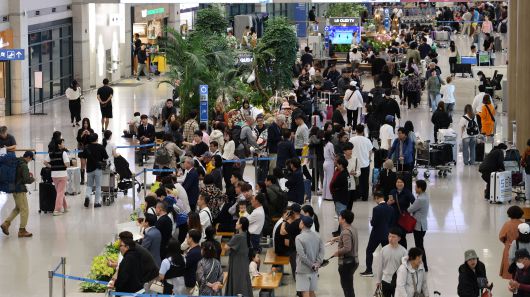 추석 연휴 인천국제공항 제1여객터미널 입국장이 이용객들로 북적이고 있다./뉴스1 |