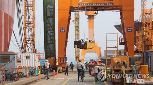 경남 거제시 대우조선해양 본사에서 중장비가 이동하는 모습 |