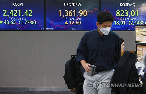 추석 연휴 이후 첫 거래일 코스피 하락 출발 |