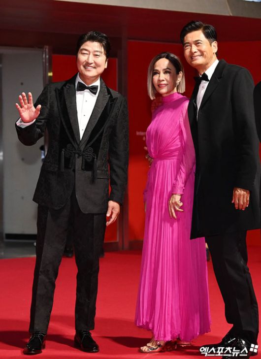 올해 영화제 호스트로 나선 송강호와 반갑게 포옹을 나눈 뒤에는 객석에 자리해 시종일관 미소를 잃지 않으며 오랜 연륜을 몸소 보여줬다.