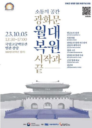 행사는 6개의 주제발표와 종합토론으로 구성된다. 1부에서는 △광화문 월대 발굴조사 경과(양숙자, 국립서울문화재연구소) △광화문 월대 복원 과정 등 소개(전의건, 문화재청 궁능유적본부) △광화문과 근정전 월대 서수상의 상징과 제작시기(김민규, 문화재청 전문위원)의 순서로 주제발표를 진행한다.