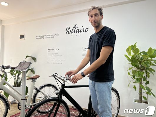 볼테르 전기자전거와 볼테르 창업자 그레고아 리외라드모습(더스윙 제공) |