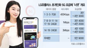 LG유플러스(032640)가 5세대(5G) 이동통신 기본 요금을 최저 3만 원까지 낮추고 데이터 제공량과 속도 제어에 따라 16개 요금 구간으로 세분화한 온라인 전용 요금제를 선보였다. 정부가 통신비 인하를 거듭 주문하고 있는 가운데 통신 3사 중 LG유플러스가 가장 먼저 최저 데이터 제공량을 기존 8GB에서 1GB로 낮춰 미사용량을 최소화하는 방식으로 사용자 부담을 줄이는 요금제를 출시한 것이다. SK텔레콤(017670)과 KT(030200)도 조만간 유사한 요금제를 내놓을 것으로 예상되면서 통신사 간 요금 인하 경쟁이 본격화할 것이라는 관측이 나온다.