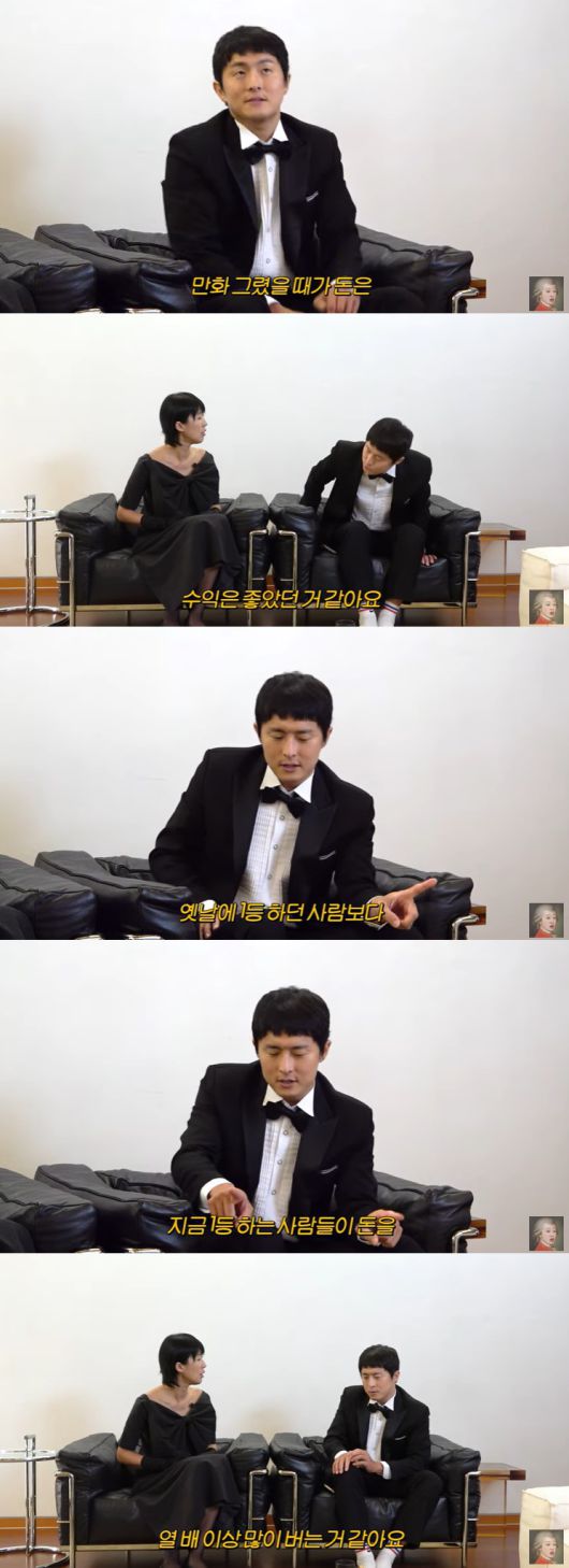 이어 웹툰작가 시절 수입에 대해 "만화가 시절이 수입은 더 좋았다. 웹툰작가 10년 하면서 보니 지금 1등하는 사람들이 과거에 비하면 10배 이상 번다. 시장파이가 커져서"라고 밝혔다.