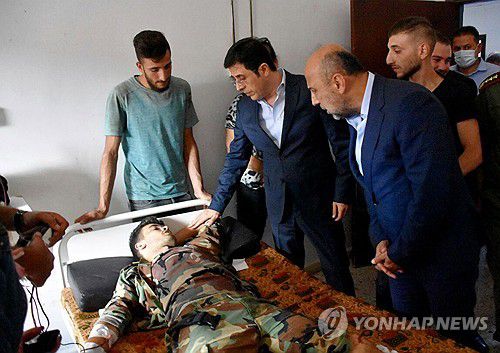 시리아 군사학교 피격 부상자와 보건부 장관 위문 |