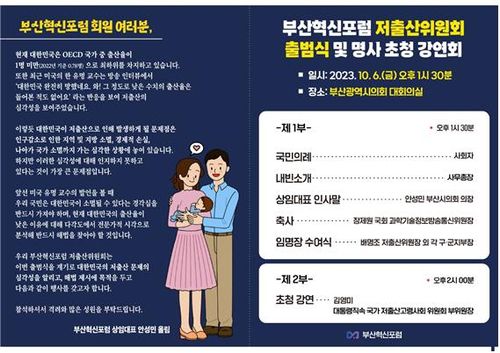 (부산=연합뉴스) 오수희 기자 = 부산혁신포럼은 6일 오후 부산시의회에서 저출산위원회 출범식과 명사 초청 강연회를 열었다.