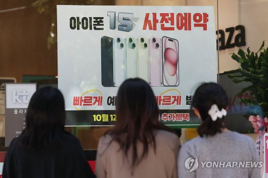 이동통신 업계에 따르면 아이폰15 기본형에 대한 통신3사 공시 지원금은 요금제에 따라 4만5100원∼45만 원이다. 이는 아이폰14 공시지원금 대비 87.5% 오른 수치다.