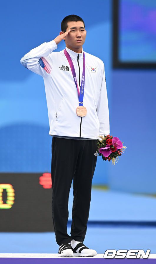 [OSEN=항저우(중국), 김성락 기자]양궁 양재원이 한국 선수간 맞대결에서 동메달을 획득했다.양재원은 7일 중국 항저우 푸양 인후 스포츠센터에서 열린 2022 항저우 아시안게임 양궁 컴파운드남자 개인전 동메달 결정전에서 주재훈을 147-146으로 꺾었다.대한민국 양재원이 시상대에서 세리머니를 하고 있다. 2023.10.07/ ksl0919@osen.co.kr |