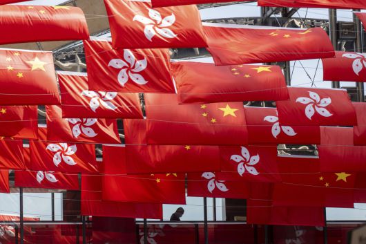 지난 1일 홍콩의 한 거리에서 중국 국경절을 맞아 중국 국기와 홍콩 깃발이 걸려 있다. [AP] |