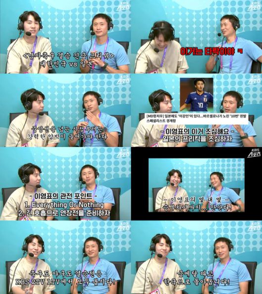 먼저 준결승전 상대 우즈베크에 대해 이영표 위원은 “좋게 말하면 더티 플레이, 나쁘게 말하면 그냥 더러운 플레이다”라며 “이런 '타락 축구'로는 좋은 성적 내기 힘들 것”이라고 돌직구를 날렸다. 하지만 남현종 캐스터는 “준결승전에서 퇴장당한 우즈베크의 부리예프가 한국을 좋아하는 선수더라”라고 뜻밖의 사실을 전했고, 이영표 위원은 “저도 우즈베크는 좋아하긴 한다”고 훈훈하게 얘기를 마무리했다.