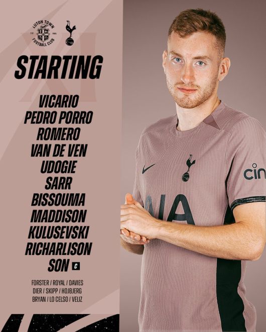 토트넘은 7일 오후 8시 30분(한국시간) 영국 루턴에 위치한 케닐워스 로드 스타디움에서 열린 2023-24시즌 프리미어리그(PL) 8라운드에서 루턴 타운을 1-0으로 격파했다. 이로써 토트넘(승점 20)은 1위, 루턴(승점4)은 17위에 위치했다.