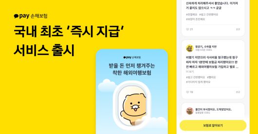 카카오페이손해보험은 해외여행보험 가입자가 카카오톡으로 간편하게 보험금을 신청하면 언제 어디서나 1분 안에 받을 수 있는 ‘즉시 지급’ 서비스를 시작했다.