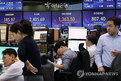 8일 금융투자업계에 따르면 코스피는 지난 6일 2,408.73으로 추석 연휴 전인 지난달 27일 2,465.07보다 2.3% 하락했다.