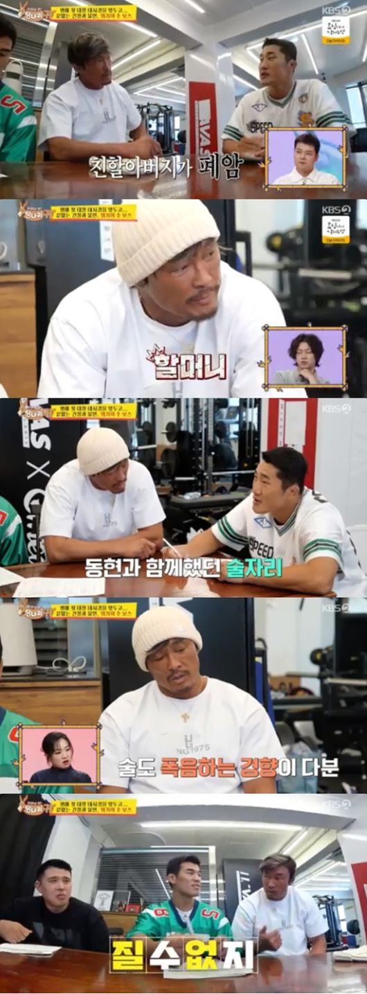 이날 추성훈은 김동현을 비롯한 체육관 후배들과의 건강검진을 계획, 문진표 작성을 시작했다. 추성훈은 가족력 문항에서 어머니가 당뇨, 할머니와 할아버지가 각각 위암, 폐암을 앓으셨다고 전하며 근심 가득한 얼굴을 드러냈다.