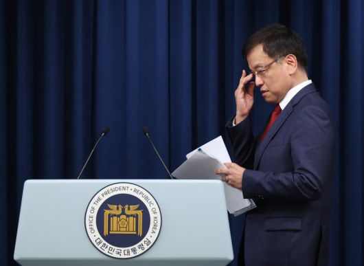 최상목 대통령실 경제수석이 9일 오후 서울 용산 대통령실 청사에서 반도체 현안 관련 브리핑을 하기 위해 입장하고 있다. 연합뉴스 |