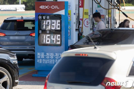 (서울=뉴스1) 이재명 기자 = 이스라엘과 팔레스타인 무장단체 하마스 간 무력 충돌 발생으로 국제유가가 약 4% 급등한 10일 서울 서초구 서울만남의광장 주유소에 휘발유·경유 가격이 표시돼 있다. 2023.10.10/뉴스12expulsion@news1.krCopyright ⓒ 뉴스1. All rights reserved. 무단 전재 및 재배포, AI학습 이용 금지.