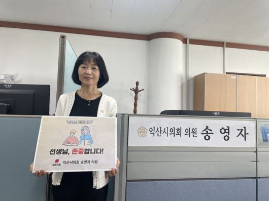 [익산=뉴시스]고석중 기자 = 전북 익산시의회 송영자 의원(비례대표, 국민의힘)이 무너진 교권 회복을 위한 릴레이 챌린지에 참여했다고 11일 밝혔다.