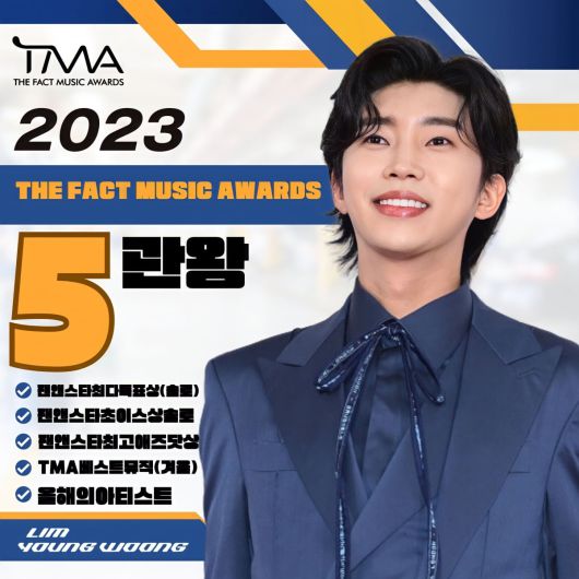 이날 임영웅은 팬앤스타 최다 득표상 솔로, 팬앤스타 초이스 상 솔로, 팬앤스타 최고 애즈닷상, 올해의 아티스트상, TMA 베스트 뮤직(겨울)의 주인공이 됐다.