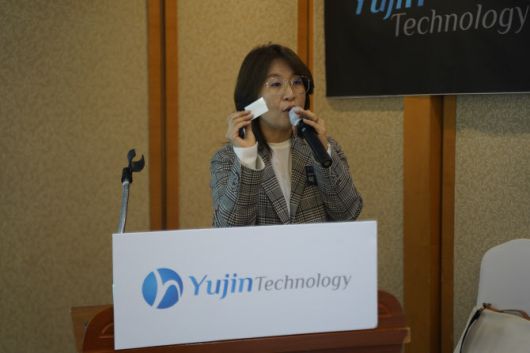 이미연 유진테크놀로지 각자 대표이사가 11일 서울 영등포구 여의도 모처에서 IPO 기자간담회를 진행하고 있다.(사진=유진테크놀로지) |