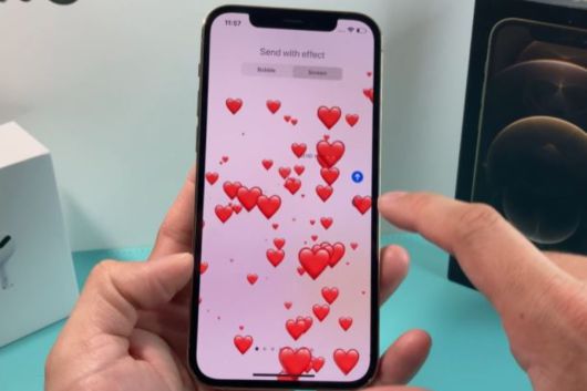 아이메시지의 스페셜 이펙트 기능을 활성화하는 장면. [유튜브 'Technomentary' 캡처] |