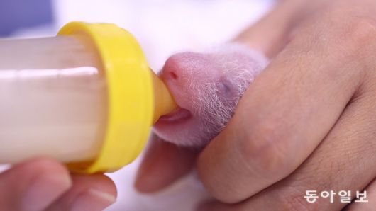 ‘루이바오’와 ‘후이바오’는 태어날 당시 몸무게가 각각 180g, 140g에 불과했다. 하지만, 생후 100일을 앞둔 현재 루이바오(5.41㎏), 후이바오(5.83㎏) 둘 다 5㎏가 넘는다. 출산 당시보다 체중이 30배 이상 늘었다. 겉모습도 생후 열흘 경부터 눈, 귀, 어깨, 팔, 다리 주변에 검은 무늬가 나타나기 시작해 현재는 오동통한 몸매에 흰 털과 검은 털이 가득한 귀여운 판다의 모습이다.