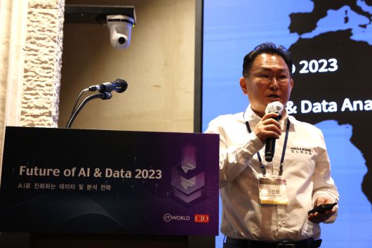 메가존클라우드 AI & 데이터분석센터 공성배 센터장이 ‘Future of AI & Data 2023’ 컨퍼런스에서 발표하고 있다. ⓒITWorld |