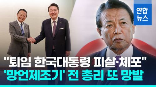 (서울=연합뉴스) 일본 총리를 지낸 아소 다로 자민당 부총재가 12일 일본 국회의원을 상대로 "한국의 역대 대통령은 5년 임기를 마치면 '대부분 살해되거나 체포된다'며 한일 교류의 어려움을 전했다"고 말했다고 마이니치신문이 13일 보도했습니다.
