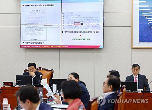 (서울·세종=연합뉴스) 고유선 김수현 기자 = 13일 국회 교육위원회의 한국교육학술정보원(KERIS) 등에 대한 국정감사에서는 개통 직후 오류로 학교 현장에 큰 혼란을 일으킨 '4세대 교육행정정보시스템(NEIS·나이스)'을 여야가 한목소리로 질타했다.