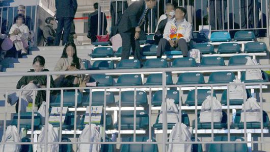 지난 13일 오후 전남 목포시 목포종합경기장에서 제104회 전국체전 개막식 진행이 한창인 가운데 전남도의원들의 자리가 비어있다. 뉴시스 |